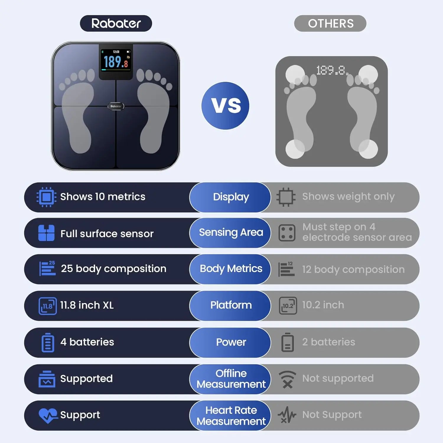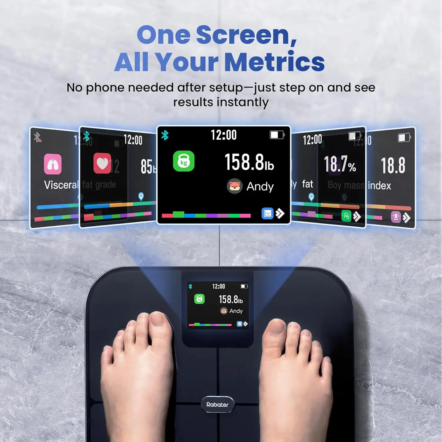 Discover a comprehensive health monitoring solution with our advanced smart scale. This device offers precise and user-friendly features to help you track your fitness journey effectively. Key Features: - Extra-Large Color Display: Enjoy a vibrant and clear screen that simultaneously shows up to 10 essential body metrics, including weight, body fat percentage, muscle mass, and heart rate. This makes it easy to get instant insights into your body composition during every weigh-in. - Advanced Sensor Technology: Equipped with high-precision sensors and full-surface ITO coating for accurate measurements. It provides weight readings with 0.1 lb precision and supports up to 400 lbs capacity. The sensing area automatically adapts to different foot sizes for consistent results. - Comprehensive Body Metrics: Track over 25 body composition metrics such as BMI, water percentage, and more. All data syncs automatically to your smartphone via a free app after a quick setup, allowing you to monitor changes over time through detailed charts and historical records. - User-Friendly App Integration: Download the companion app to access detailed analytics and sync progress with popular health platforms like Samsung Health and Apple Health. Easily share your fitness achievements with friends and family for added motivation. - Unlimited User Support: Ideal for families or groups, this scale supports unlimited users with automatic recognition for up to eight profiles. It includes a dedicated Baby Mode to monitor growth, making it versatile for all ages. - Sleek and Safe Design: Built with non-slip pads, smooth rounded corners, and a durable tempered glass platform for safety. The unit allows easy switching between measurement units (lb/kg/st) via the app. This smart scale is perfect for anyone looking to enhance their health tracking routine without complex setups.