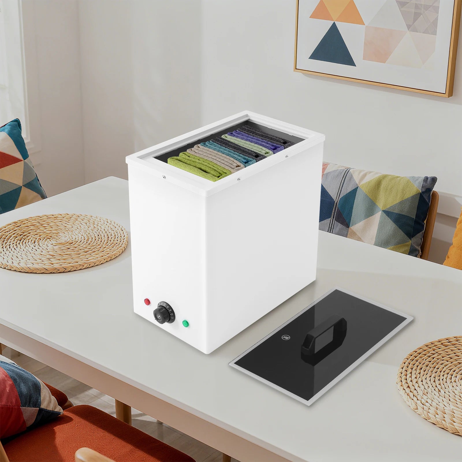 Deep-Penetrating Steam Heat: Its steam-based heating design ensures deep, penetrating warmth that sanitizes towels thoroughly, providing a more hygienic and comfortable experience beyond mere surface heating.